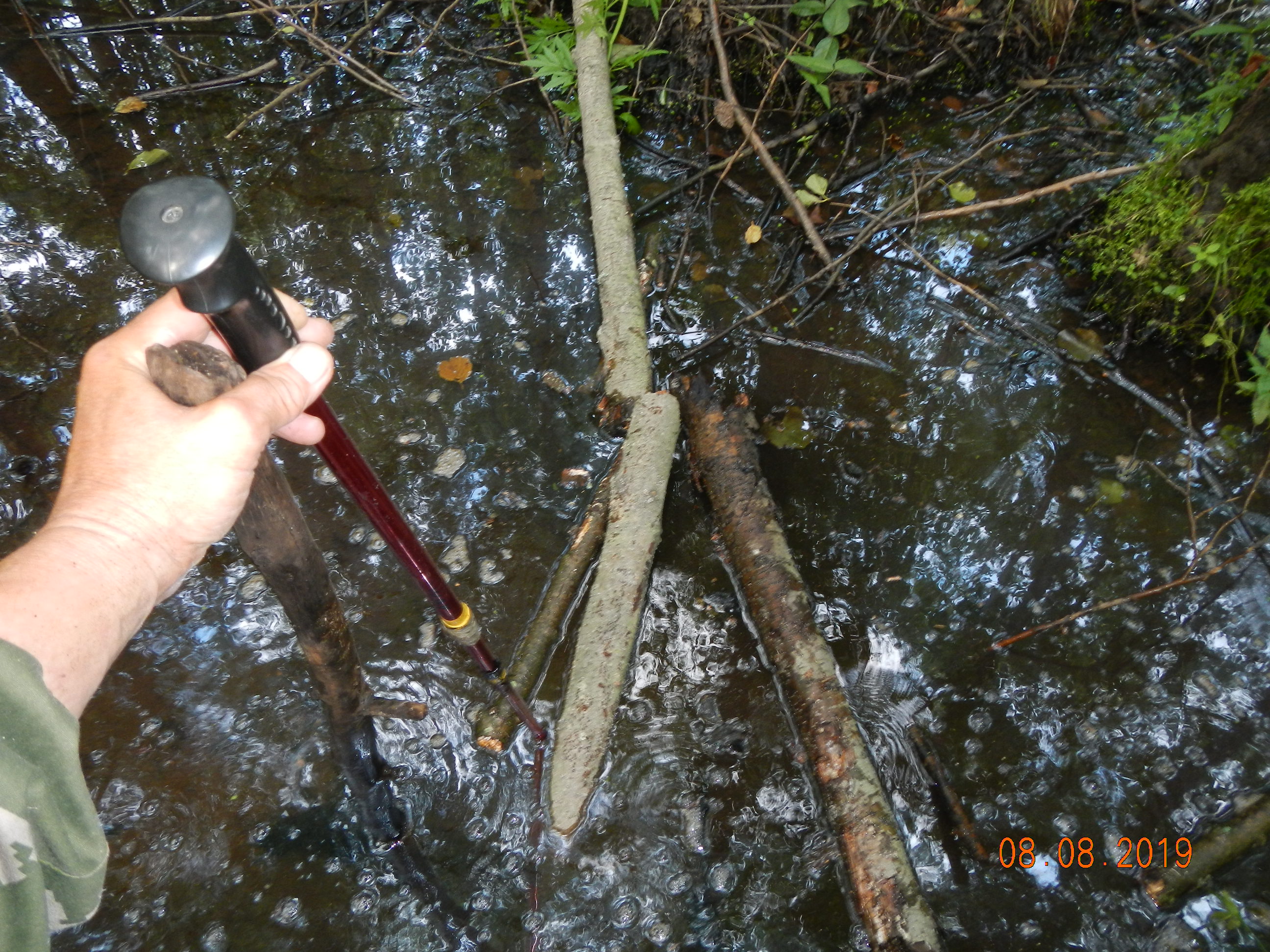 Палка пролетала в болото как иголка, по самую ручку.